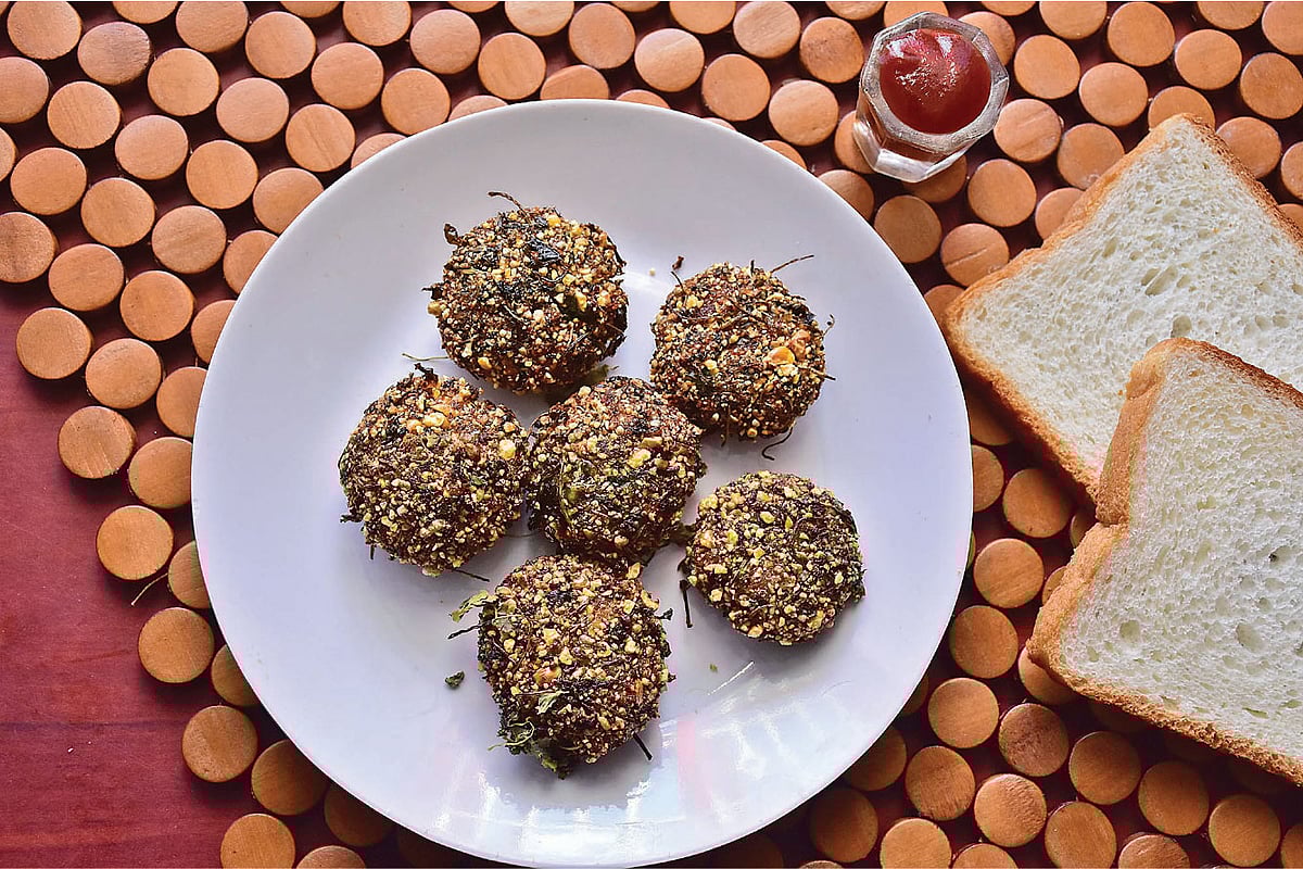வாய் அகன்ற பாத்திரத்தில் எண்ணெய் தவிர மற்ற பொருள்களைப் போட்டு நீர் தெளித்து மாவாகப் பிசையவும். மாவை வடைகளாகத் தட்டி ஃப்ரிட்ஜில் 10 நிமிடங்கள் வைத்து எடுக்கவும். சூடான எண்ணெயில் பொன்னிறமாகப் பொரித்தெடுக்கவும்.