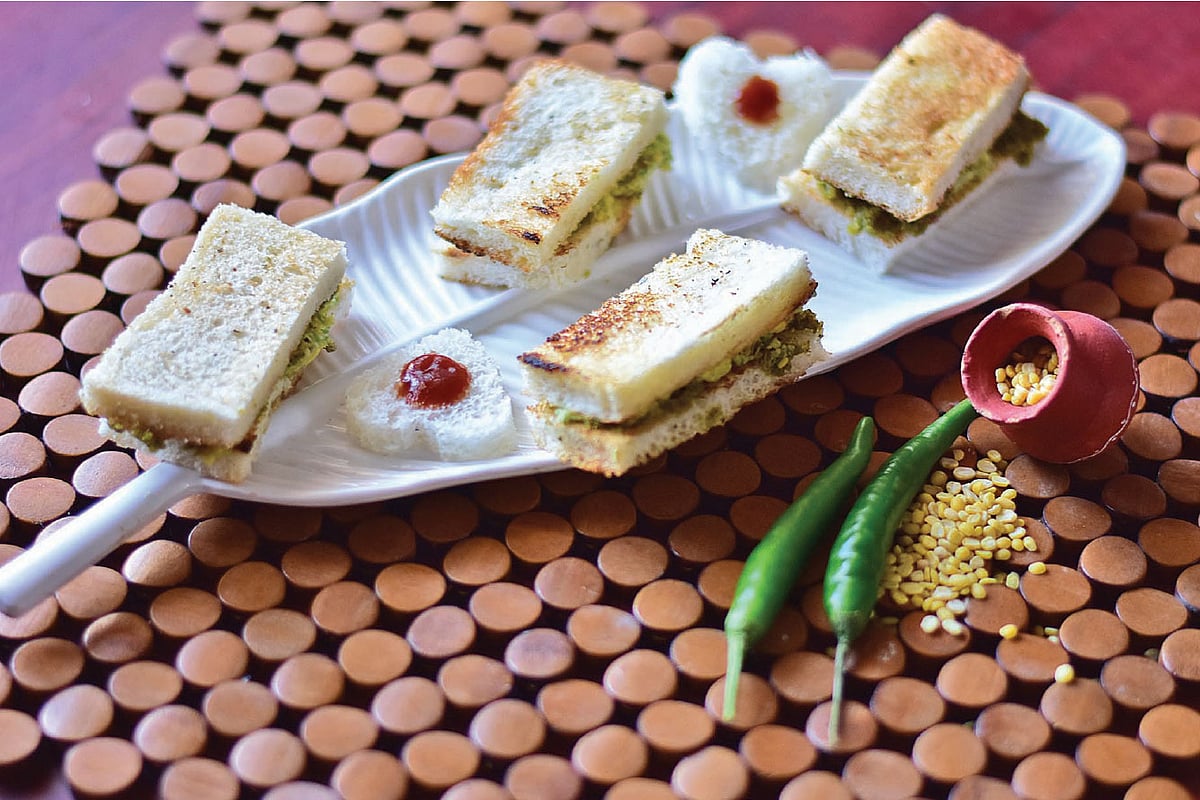 அடுப்பில் மிதமான தீயில் தோசைக்கல்லை வைத்து நெய்விட்டு சூடானதும், பிரெட் துண்டில் ஒருபக்கம் வெண்ணெய் தடவி அதன் மீது சட்னி தடவவும், மற்றொரு பிரெட் துண்டில் ஒருபுறம் வெண்ணெய் தடவி அதன் மீது பாசிபருப்பு மசாலாவைத் தடவி இரு பிரெட் துண்டுகளையும் மூடி சூடான தோசைக்கல்லில் இருபுறமும் சுட்டு (டோஸ்ட் செய்து) எடுக்கவும் அல்லது பிரெட் டோஸ்டரில் டோஸ்ட் செய்து எடுத்துக் கொள்ளவும். தக்காளி சாஸ் அல்லது மயோனைஸ் உடன் சாப்பிடவும்.
