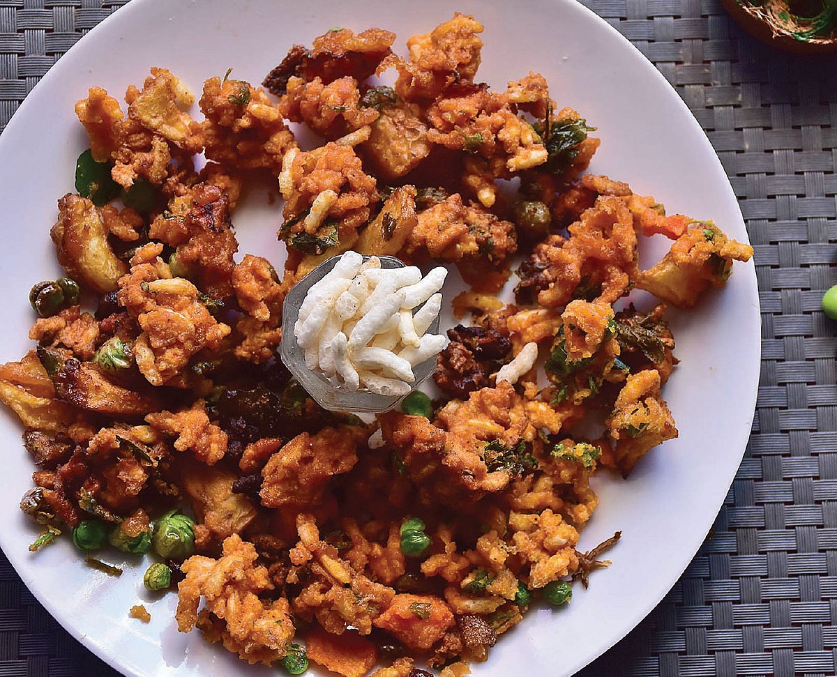 ஒரு வாய் அகன்ற பாத்திரத்தில் எண்ணெய் தவிர மேற்கூறிய பொருள்களைப் போட்டு தண்ணீர் தெளித்துப் பிசையவும். எண்ணெயைச் சூடாக்கி, மாவைக் கிள்ளிக் கிள்ளிப் போட்டு பொன்னிறமாகப் பொரித் தெடுக்கவும்.