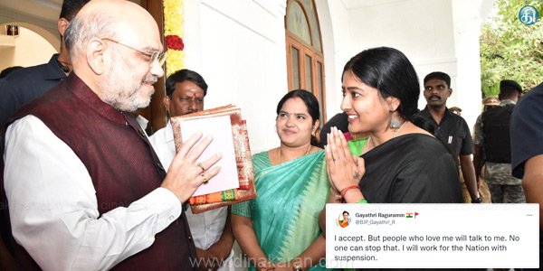 கட்சியின் கட்டுப்பாட்டை மீறியும், கட்சிக்கு களங்கம் விளைவிக்கும் செயல்களில் தொடர்ச்சியாக ஈடுபட்டு வருவதால் இந்த நடவடிக்கை எடுக்கப்பட்டுள்ளதாக அண்ணாமலை தெரிவித்துள்ளார். இந்நிலையில் இது குறித்து டிவிட்டரில் கருத்து தெரிவித்துள்ள காயத்ரி ரகுராம்; ‘6 மாதங்களுக்கு கட்சியிலிருந்து என்னை நீக்கியுள்ளனர் அதை நான் ஏற்றுக்கொள்கிறேன். ஆனால் என்னை நேசிப்பவர்கள் என்னிடம் பேசுவார்கள்,அதை யாராலும் தடுக்க முடியாது. இடைநீக்கம் செய்தாலும் தேசத்திற்காக உழைப்பேன் இவ்வாறு குறிப்பிட்டுள்ளார்.