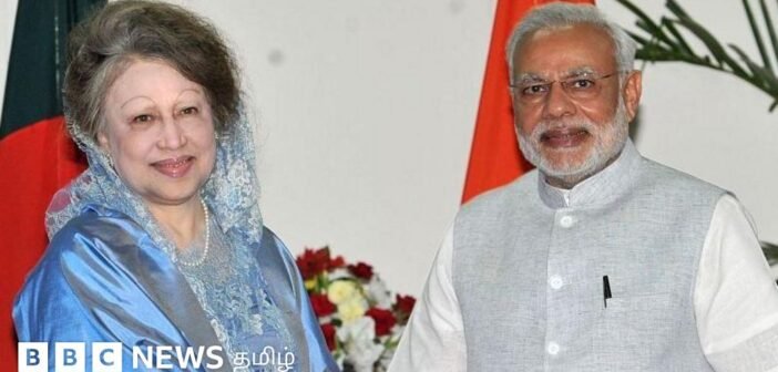 படக்குறிப்பு, 2015 ஆம் ஆண்டு வங்கதேச பயணத்தின் போது, ​​பிரதமர் நரேந்திர மோதி அப்போது எதிர்க்கட்சித் தலைவராக இருந்த காலிதா ஜியாவையும் சந்தித்தார். (கோப்புப் படம்)