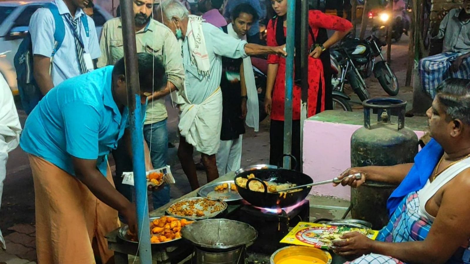 Kanchipuram Road Side Famous Foodstall | காஞ்சிபுரத்தில் வெறும் ₹2 ரூபாய்க்கு சுட சுட மசால் வடை, உளுந்த வடை,ஸ்வீட் போண்டா, கார போண்டா,வாழைக்காய் பஜ்ஜி உள்ளிட்ட தின்பண்டங்களை விற்பனை செய்து கலக்கி வருகிறது "சுதாகர் மெஸ்" எனும் சிற்றுண்டி கடை.