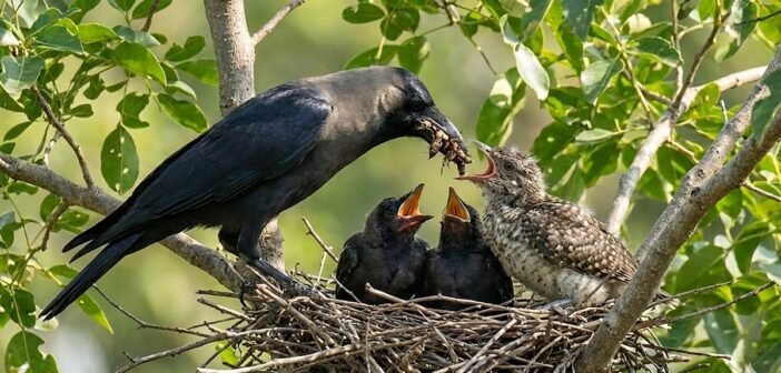 கூடு காலியான அந்தச் சில நொடிகள் போதும்… மரக்கிளையில் மறைந்திருக்கும் பெண் குயில், மின்னல் வேகத்தில் காகத்தின் கூட்டுக்குள் சென்று முட்டையிட்டுப் பறந்துவிடும்.
