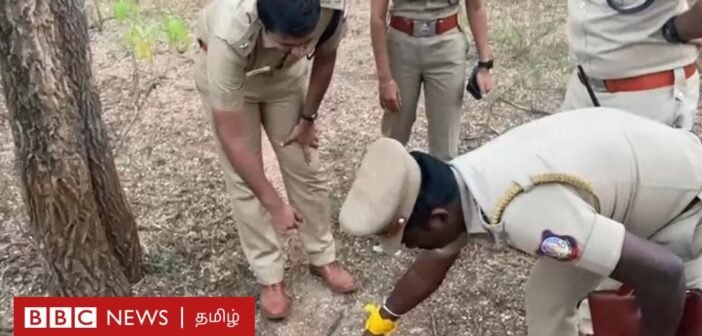 துப்பாக்கி சூடு நடந்த பகுதியை ஆய்வு செய்யும் போலீஸ் அதிகாரிகள்