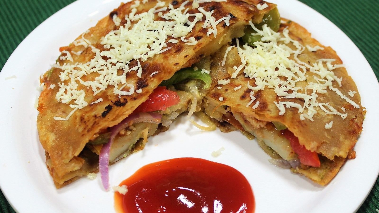 சப்பாத்திகள் – 4, கார்ன் – 1/4 கப், முட்டைக்கோஸ் – 1/2 கப், ட்ரை மேங்கோ பவுடர் – 1/2 டீஸ்பூன், ரெட் சில்லி பவுடர் – 1 டீஸ்பூன், மயோனைஸ் – 2 டேபிள்ஸ்பூன், பட்டர் – 2 டீஸ்பூன், வெங்காயம் – 1/2 கப், கேப்சிகம் (க்ரீன் பெப்பர்) -1/2 கப், வெஜிடபிள் ஆயில் – 1 டேபிள்ஸ்பூன், மல்லி தூள் – 1/2 டீஸ்பூன், டொமேட்டோ கெட்ச்அப் – 2 டேபிள்ஸ்பூன், சீஸ் க்யூப்ஸ் – 4 பீஸ், உப்பு – தேவைக்கேற்ப