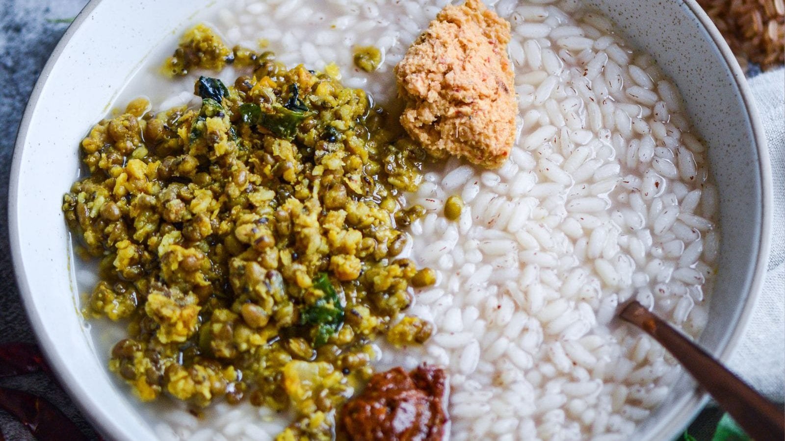 கஞ்சி இவ்வளவு தான். ஆனால், கேரள கஞ்சி என்பது ஒரு முழு உணவு. இந்த கஞ்சியை அப்படியே சாப்பிட மாட்டார்கள். இதற்கு பதார்த்தங்கள் ஆக துவையல், பயிறு, சுண்டல், பொறியல், பப்படம், பருப்பு வேக வைத்த காய்கறி ஆகியவை சேர்க்கலாம்.