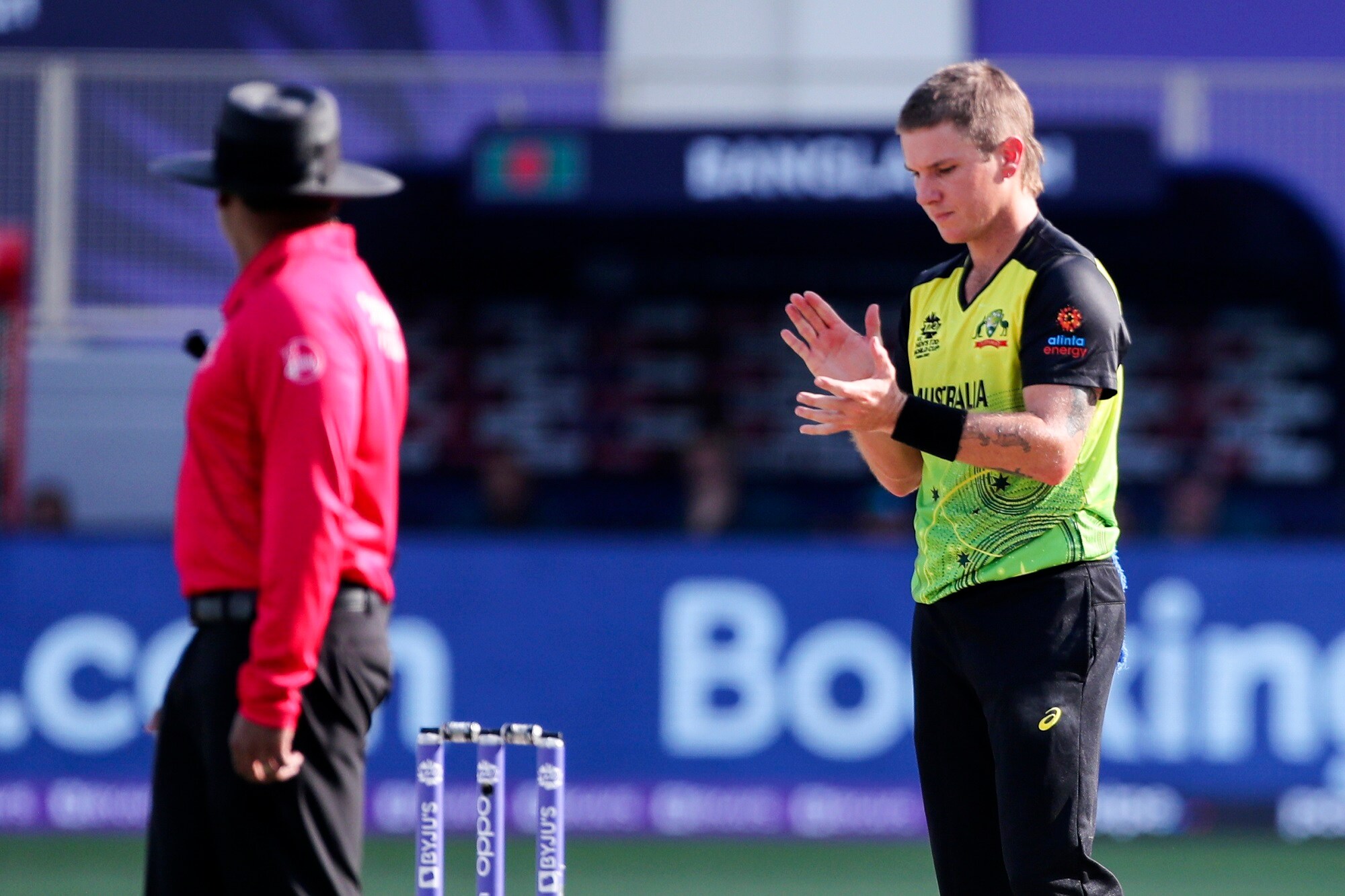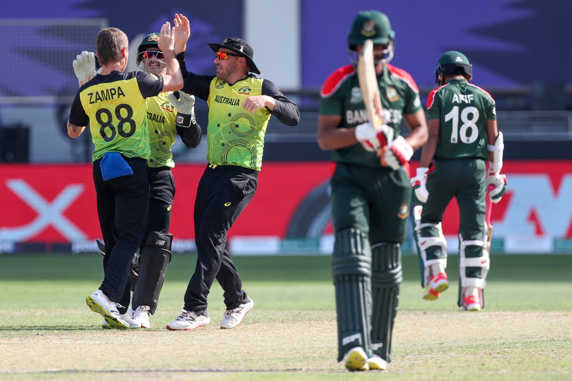 ஜாம்ப்பா இதே பாணியில் மேலும் 2 விக்கெட்டுகளை சாய்த்தார், மேத்யூ வேட் ஒரு கேட்சைப்பிடித்திருந்தால் ஹாட்ரிக் அடித்திருப்பார். அதே ஓவரின் 4 மற்றும் 6வது ஓவரில் வங்கதேசத்தை சப்ஜாடா ஒழித்து விட்டார் ஜாம்ப்பா. வங்கதேச அணியில் 3 வீரர்கள் மட்டுமே இரட்டை இலக்கம் எட்டினர், தொடக்க வீரர் நயீம், கேப்டன் மகமுதுல்லா. ஷமிம் ஹுசைன் இரட்டை இலக்கம் எட்டினர்.