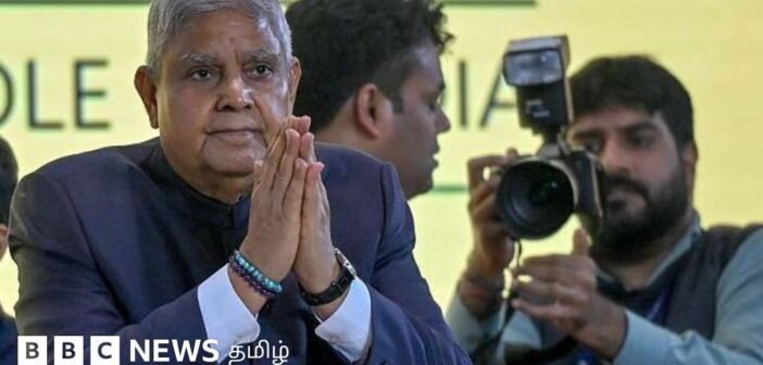 படக்குறிப்பு, ஜெகதீப் தன்கர் ராஜினாமா செய்வதற்கு முன்பு நாள் முழுவதும் மிகவும் பரபரப்பாகப் பணியாற்றிக் கொண்டிருந்தார். (கோப்புப் படம்)