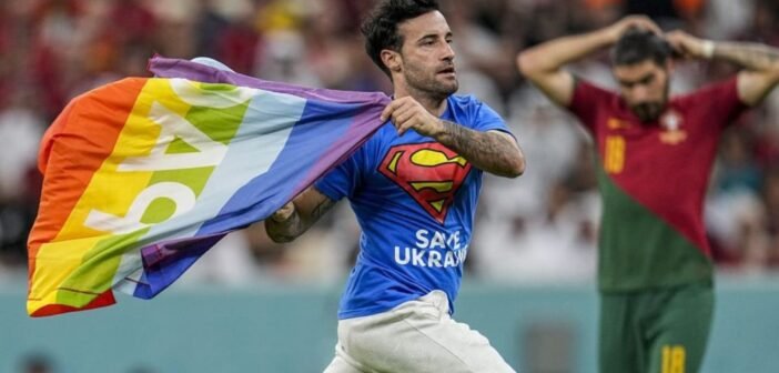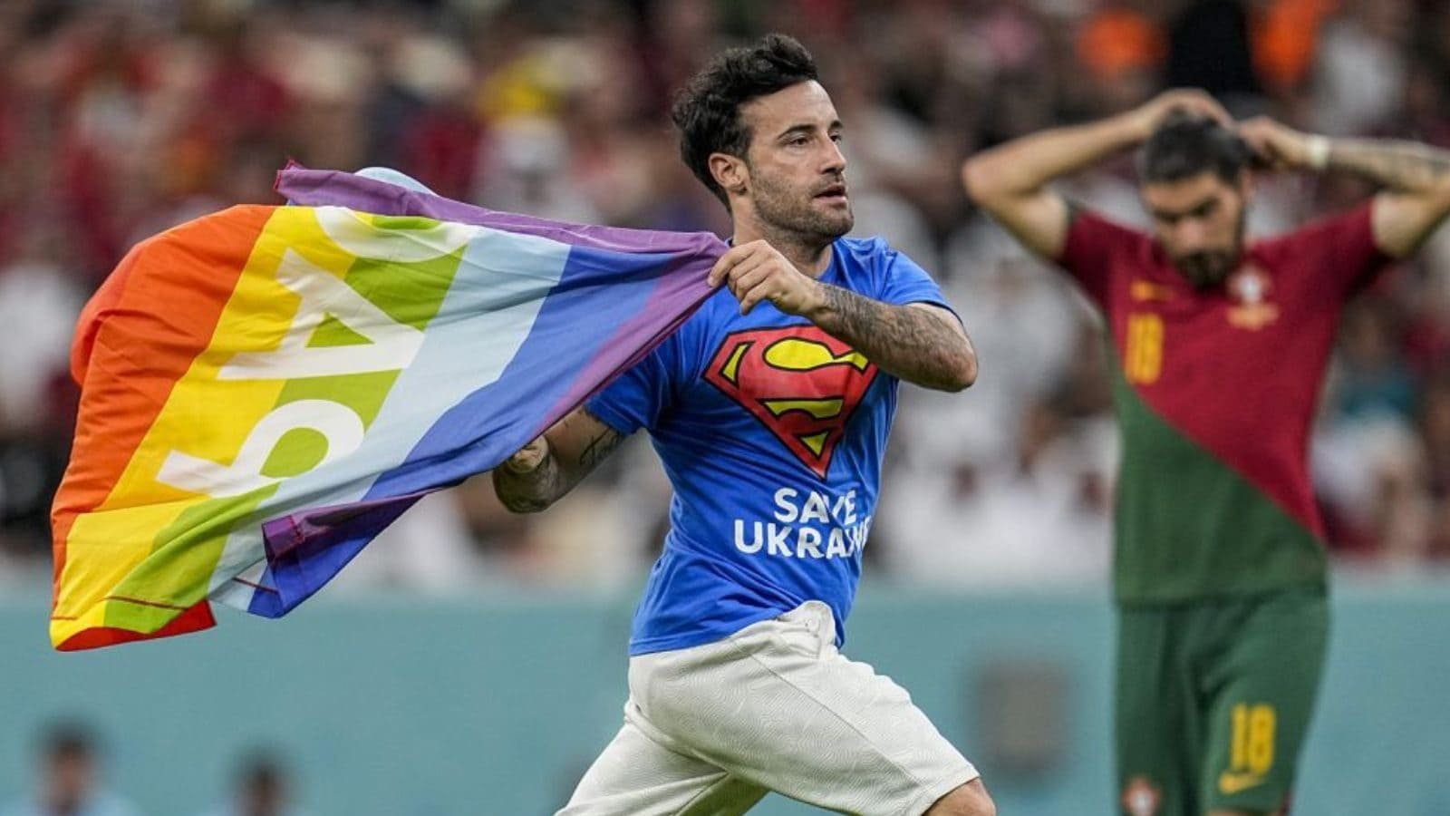 கத்தாரில் நடைபெறும் உலகக் கோப்பை கால்பந்து போட்டி நடைபெற்று கொண்டிருந்த போது இளைஞர் ஒருவர் தன்பாலின ஈர்ப்பாளர்களுக்கு (குயர் சமூகத்தினர்) ஆதரவாக வானவில் கொடியை ஏந்தி மைதானத்திற்குள் நுழைந்த சம்பவம் பரபரப்பை ஏற்படுத்தியது.