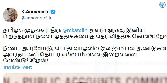 தமிழ்நாடு முதலமைச்சர் மு.க.ஸ்டாலினுக்கு பாஜக தலைவர் அண்ணாமலை பிறந்த நாள் வாழ்த்து!!