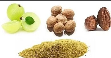 * கடுக்காய் ஒரு பங்கு, நெல்லிக்காய் நான்கு பங்கு, தான்றிக்காய் இரண்டு பங்கு எடுத்துக்கொள்ளவும். அவற்றை நிழலில் நன்றாக உலர்த்தவும். பின்னர், அரைத்துப் பொடியாக்கவும். இதை வீட்டில் தயாரிக்க முடியாதவர்கள், நாட்டு மருந்துக் கடைகளில் கிடைக்கக் கூடிய திரிபலா பொடியை வாங்கிப் பயன்படுத்தலாம்.