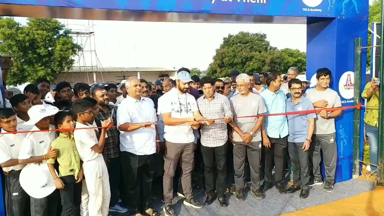 தேனி அருகே உள்ள தப்புக்குண்டு மைதானத்தில் தேனி கிரிக்கெட் அகாடமி சார்பில் கிரிக்கெட் வீரர்கள் பயிற்சி மேற்கொள்வதற்காக சேட்டிலைட் சென்டர் திறப்பு விழா நேற்று (ஜூன் 7) நடைபெற்றது. இவ்விழவை இந்திய கிரிக்கெட் அணி வீரர் வருண் சக்கரவர்த்தி, தமிழ்நாடு கிரிக்கெட் சங்க தலைவர் அசோக் சிகாமணி ஆகியோர் கலந்துகொண்டு பயிற்சி மையத்தை திறந்து வைத்தனர்.