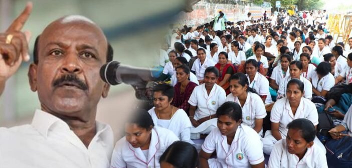 தமிழகத்தில் தொகுப்பூதியத்தில் பணிபுரியும் செவிலியர்களின் போராட்டம் மூன்றாவது நாளாக தொடர்ந்து கொண்டிருக்கிறது. இந்நிலையில், பேச்சுவார்த்தையில் அமைச்சர் மா.சுப்பிரமணியம் கடுமையாக நடந்துகொள்வதாகவும் ‘வாக்குறுதி கொடுத்தா நிறைவேத்தணுமா?’ என தடாலடியாக பேசுவதாகவும் போராட்டக்காரர்கள் குற்றஞ்சாட்டுகின்றனர்.