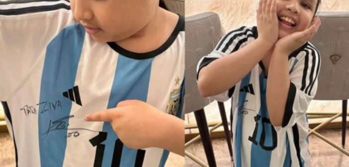 கத்தாரில் நடைபெற்ற உலக கோப்பை கால்பந்து இறுதி போட்டியில் பிரான்ஸ் அணியை வீழ்த்தி மூன்றாவது முறையாக சாம்பியன் பட்டத்தை வென்றது மெஸ்ஸி தலைமையிலான அர்ஜெண்டினா. மேலும் மெஸ்ஸி தனது கையெழுத்தயிட்ட ஜெர்ஸியை பிசிசிஐ பொதுச்செயலாளர் ஜெய் ஷாவுக்கு அனுப்பி இருந்தார். அந்த வரிசையில் கிரிக்கெட் வீரர் தோனியின் மகளுக்கு தனது கையெழுத்திட்ட ஜெர்ஸியை அனுப்பியுள்ளார் மெஸ்ஸி.