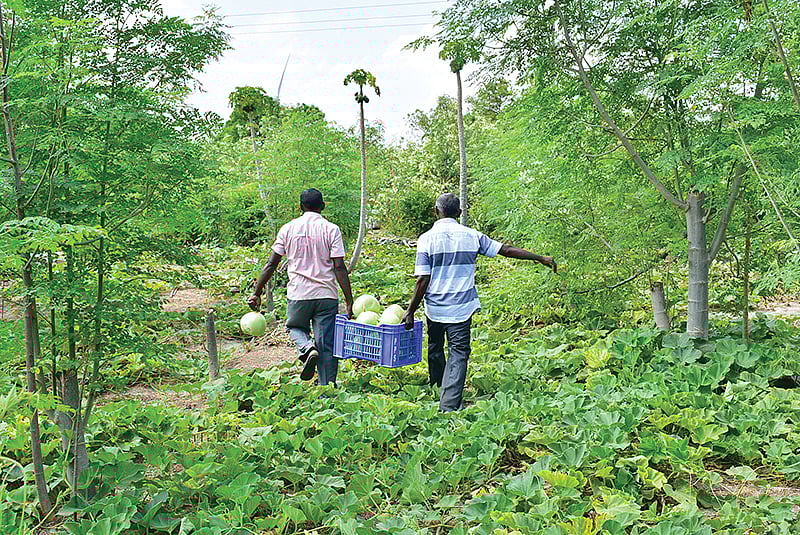 ”தோட்டக்கலைப் பயிர்களில் தென்னந்தோப்பில் ஊடுபயிராக நடுவதற்கு ஏற்ற பாக்கு, மிளகு செடிகள், வேலிப்பகுதியில் நடுவதற்கு ஏற்ற சில்வர் ஓக், தேக்கு, பலா, புளி போன்ற மரக்கன்றுகள் தரப்படுகின்றன.