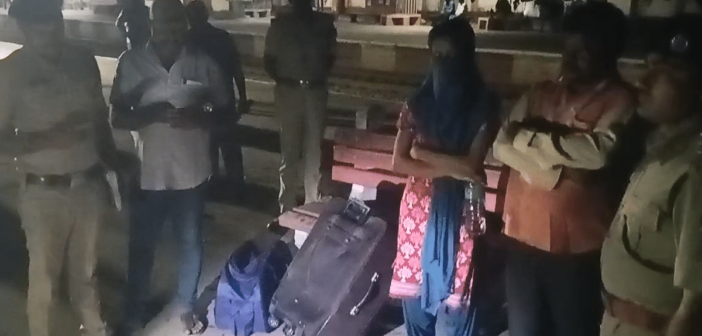 ஆந்திர மாநிலம், நெல்லூரிலிருந்து சென்னை சென்ட்ரலுக்கு கடந்த 4-ம் தேதி புறப்பட்ட மின்சார ரயில் திருவள்ளூர் மாவட்டம், மீஞ்சூர் ரயில் நிலையத்தில் நின்றது. அப்போது ரயிலிலிருந்து 40 வயது மதிக்கத்தக்க ஆணும் இளம்பெண்ணும் சூட்கேஸ்களுடன் கீழே இறங்கினர். பின்னர் அவர்கள் இருவரும் தங்களின் சூட்கேஸ்களை பிளாட்பாரத்தில் வைத்து விட்டு மீண்டும் ரயிலில் ஏற முயன்றனர். அதைப் பார்த்த ரயில்வே பாதுகாப்பு காவலர் மகேஷ், சூட்கேஸ்களை ஏன் பிளாட்பாரத்தில் வைத்துவிட்டு செல்கிறார்கள் என இருவரிடமும் கேட்டுள்ளார். அதற்கு அவர்கள் இருவரும் பதிலளிக்காமல் அங்கிருந்து தப்பி ஓட முயன்றனர். அதனால் ரயில்வே பாதுகாப்பு படை காவலர் மற்றும் அங்கிருந்தவர்கள் இருவரையும் மடக்கிப் பிடித்தனர்.