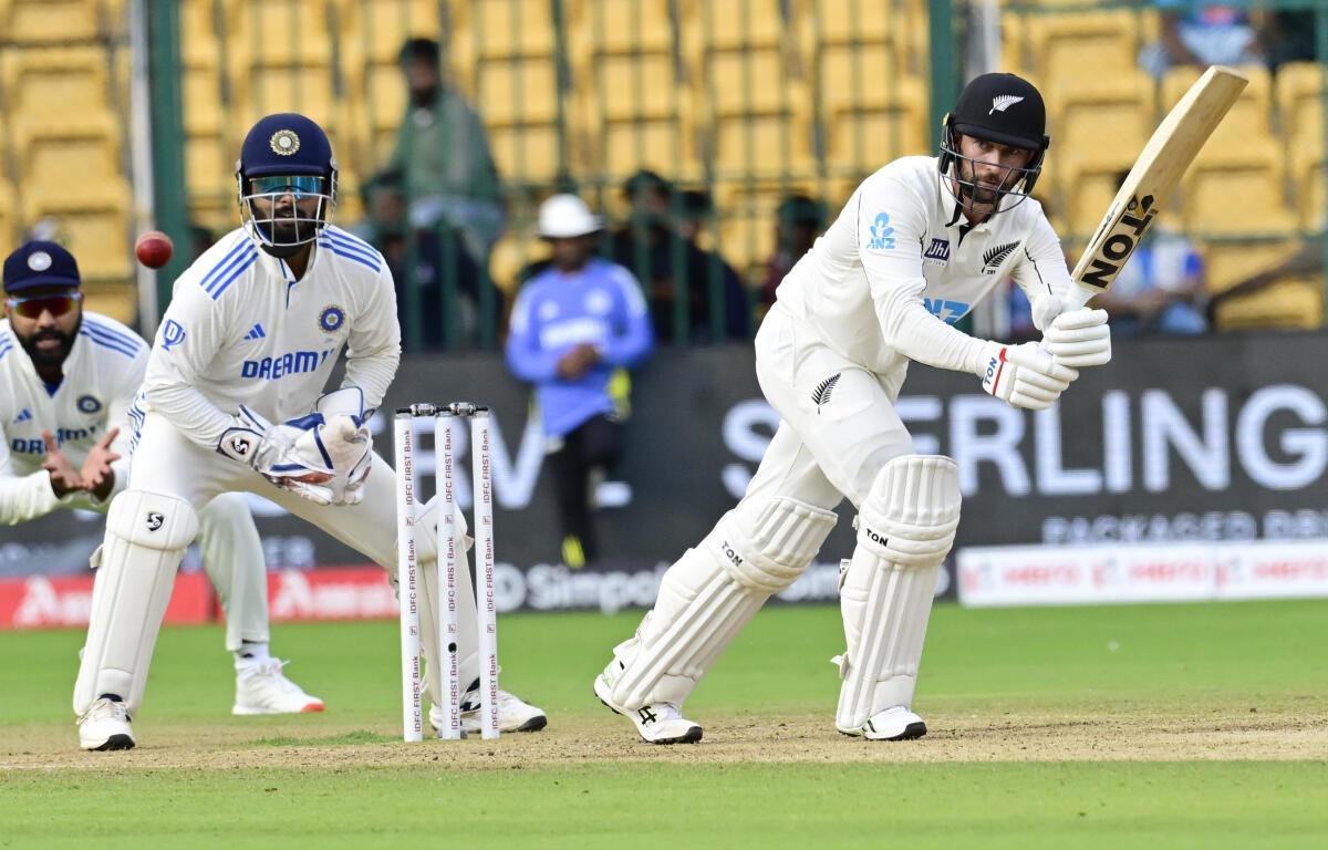 பெங்களூரு: இந்தியாவுக்கு எதிரான முதல் டெஸ்ட் போட்டியின் இரண்டாவது நாள் ஆட்ட நேர முடிவில் 3 விக்கெட்டுகளை இழந்த நியூஸிலாந்து அணி 180 ரன்களைச் சேர்த்துள்ளது. இதன் மூலம் அந்த அணி 134 ரன்கள் முன்னிலையில் உள்ளது.