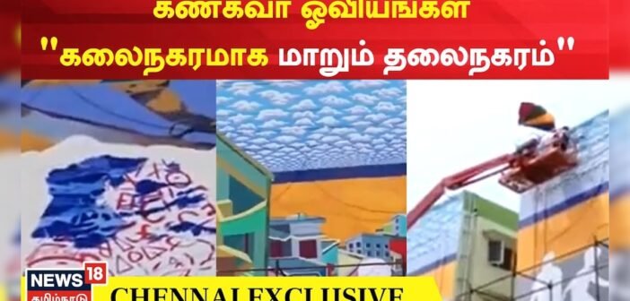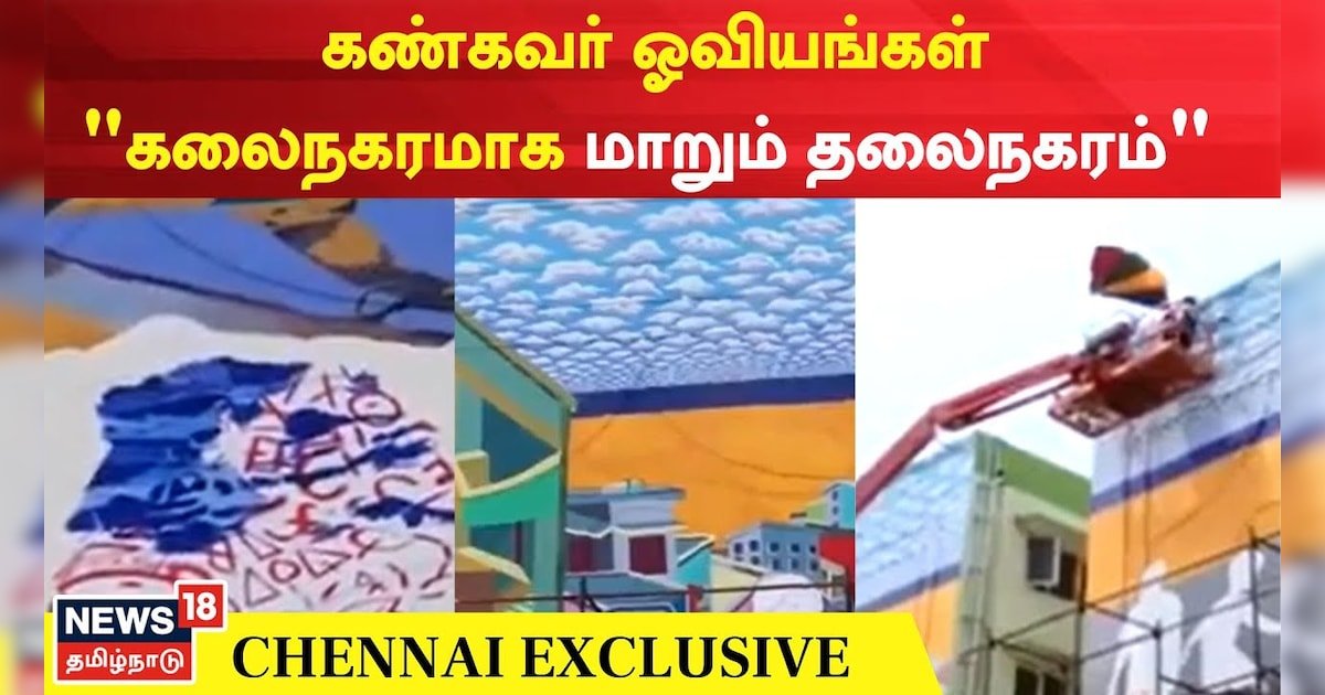 சென்னை மெரினாவில் கலைநகரத்தை உருவாக்கும் விதமாக கட்டிடங்களில் கண்கவர் ஓவியங்கள் வரையப்பட்டு வருகின்றன.