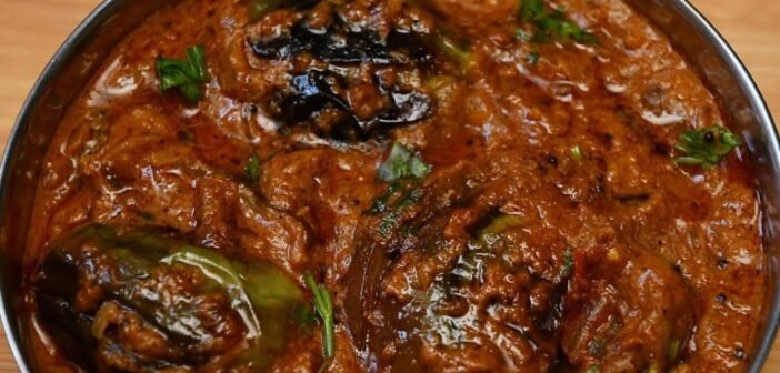 10. இதனுடன் தேவையான அளவு உப்பு மற்றும் வெல்லம் சேர்த்து 7 நிமிடங்கள் கொதிக்க வைக்க வேண்டும். அதன் பின் வதக்கி வைத்த கத்திரிக்காயை இதில் சேர்க்கவும். மேலும் இதில் பெருங்காயம் சேர்த்து தேவைப்பட்டால் தண்ணீர் ஊற்றி கொதிக்க வைக்கவும்.