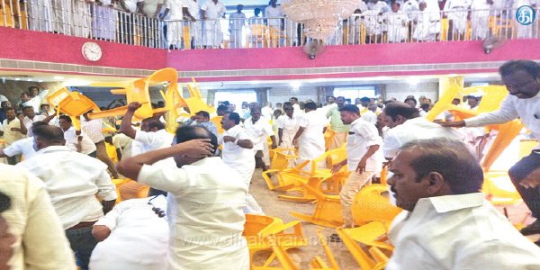 ஒற்றைத் தலைமையை வலியுறுத்தி ராமநாதபுரத்தில் ஆலோசனை இபிஎஸ் ஆதரவாளர்கள் கூட்டத்தில் ஓபிஎஸ் தரப்பினர் புகுந்து தாக்குதல்: நாற்காலிகள் வீச்சு; கார் கண்ணாடி உடைப்பு
