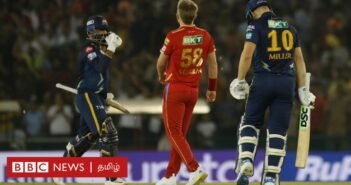 பட மூலாதாரம், BCCI/IPL13 ஏப்ரல் 2023, 16:58 GMTபுதுப்பிக்கப்பட்டது 4 மணி நேரங்களுக்கு முன்னர்பஞ்சாப் கிங்ஸ் அணிக்கு எதிரான ஐபிஎல் ஆட்டத்தில் கடைசி ஓவரில் த்ரில் வெற்றிபெற்றது குஜராத் டைடன்ஸ். சாம் கரண் வீசிய கடைசி ஓவரில் நன்றாக ஆடிக்கொண்டிருந்த சுப்மல் கில் க்ளீன் போல்டாக ஆட்டம் சூடுபிடித்தது. இருந்தாலும் போட்டியை பவுண்டரி அடித்து முடித்து வைத்தார் ராகுல் தேவாட்டியா.அதிர்ச்சி கொடுத்த ஓபனிங் பேட்ஸ்மேன்கள்பட மூலாதாரம், BCCI/IPLமொஹாலியில் நடைபெற்ற ஐபிஎல் கிரிக்கெட் போட்டியின் 18வது ஆட்டத்தில் பஞ்சாப்…