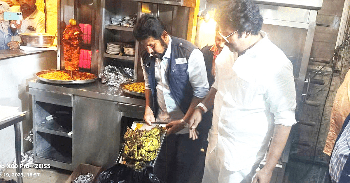 திருச்சி மாவட்ட உணவு பாதுகாப்புத்துறை அலுவலர் ரமேஷ்பாபு தலைமையிலான அதிகாரிகள், திருச்சி தில்லை நகர் – சாஸ்திரி ரோடு – சாலை நகர் பகுதிகளைச் சுற்றியிருக்கும் உணவகங்களில் நேற்று (19.09.2023) ஆய்வில் இறங்கினர். குறிப்பாக ஷவர்மா, கிரில் சிக்கன் போன்ற துரித உணவுகளை விற்பனை செய்யும் சுமார் 21 கடைகளில் ஆய்வு நடத்தினர். அப்போது பல கடைகளில் கிலோ கணக்கில் கெட்டுப் போன இறைச்சிகளும், சுகாதாரமற்ற வகையில் சமைத்து வைக்கப்பட்டிருந்த இறைச்சிகளும் இருந்தது கண்டுபிடிக்கப்பட்டிருக்கிறது. சுமார் 90 கிலோ அளவுக்கு கண்டுபிடிக்கப்பட்ட இந்தக் கெட்டுப்போன இறைச்சிகளை, உணவு பாதுகாப்புத்துறை அதிகாரிகள் குப்பையில் கொட்டி அழித்தனர். இதில் 9 கடைகளுக்கு உணவு பாதுகாப்பு தர நிர்ணய சட்டம் 2006, பிரிவு 55-ன் கீழ் நோட்டீஸ் வழங்கி நடவடிக்கை எடுத்ததோடு, இதில் ஆறு கடைகளுக்கு தலா 3,000 ரூபாய் அபராதத்தையும் விதித்தனர்.