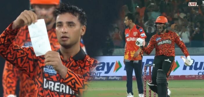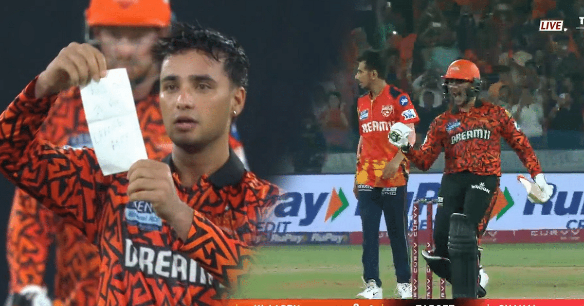 40 பந்துகளில் அபிஷேக் சர்மா சதமடித்திருந்தார். சதத்தை அடித்துவிட்டு கொண்டாட்டத்தில் ஈடுபடும் போது, பாக்கெட்டுக்குள் இருந்து ஒரு துண்டுச் சீட்டை எடுத்து கேமராக்களுக்கு காட்டினார். அதில், ‘This one is for Orange Army’ (‘ஆரஞ்சு ஆர்மி ரசிகர்களே இது உங்களுக்காகத்தான்!’) ன எழுதப்பட்டிருந்தது.