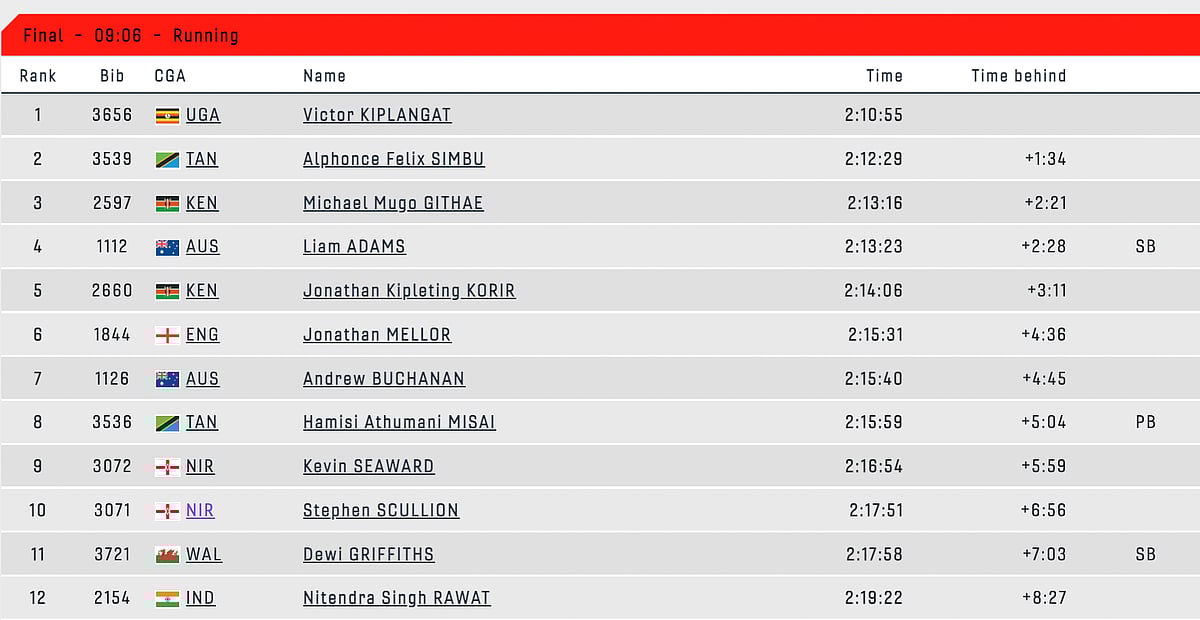 Men’s marathon final: நிதேந்திர சிங் ராவத் 12வது இடம் பிடித்தார்!