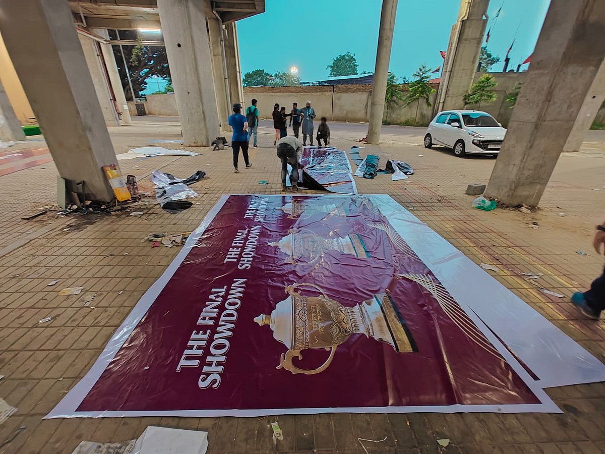 ‘பிசிசிஐ ஒப்பந்தம் மூலமாகத்தான் இந்த பணியையெல்லாம் எடுத்து செய்ய முடியும். கொல்கத்தாவில் ‘Arun Shines’ என ஒரு கம்பெனி வைத்திருக்கிறோம். இறுதிப்போட்டியில் மைதானத்தில் நீங்கள் பார்க்கும் பதாகைகள், தட்டிகள், அலங்காரங்கள் என எல்லாமே எங்கள் குழு செய்ததுதான். டெல்லி, ஜெய்ப்பூர் போன்ற மைதானங்களிலும் இந்த சீசனில் வேலை பார்த்திருக்கிறோம். எங்களை போன்று ஒவ்வொரு பிராந்தியத்திலும் ஒவ்வொரு குழுவினர் இருப்பார்கள். அந்தந்த ஏரியாவிற்குள் வரும் மைதானங்களில் அவர்கள் அலங்கரிப்பார்கள். இங்க இறுதிப்போட்டிக்கான இந்த மேடைக்காக மட்டும் பிசிசிஐ பல லட்சங்களை செலவழித்துள்ளார்கள். டிசைனெல்லாம் அவங்களோட விருப்பத்தைத் தெரிவிப்பர். நாங்களும் அதுக்கு ஏற்றார் போல செய்து கொடுத்துவிடுவோம்.’ என்றார் சௌம்யவர்தன்.