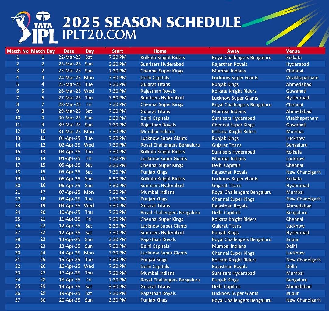 IPL 2025 : 'CSK க்கு முதல் போட்டியே மும்பையோடு!' – வெளியானது ஐ.பி.எல் அட்டவணை!