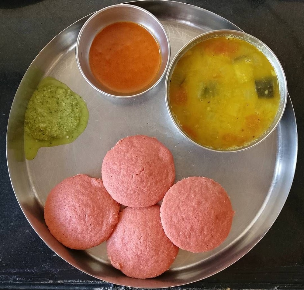 நன்றாக வேகவைத்தவுடன் பீட்ரூட் இட்லிகளை தட்டில் இருந்து எடுத்து பரிமாற தயார் செய்யவும். பீட்ரூட் இட்லியை தேங்காய் சட்னியுடன் சேர்த்து சாப்பிட பிரமாதமாக இருக்கும். இதனை மேலும் ஆரோக்கியமாகவும், சுவைமிக்கதாகவும் மாற்ற பீட்ரூட் இட்லிகளை சில கிளாசிக் சாம்பார் மற்றும் சட்னியுடன் பரிமாறவும்.