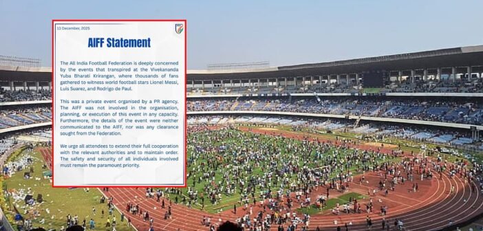 கால்பந்து ஜாம்பவான் லியோனல் மெஸ்ஸி கலந்துகொண்ட கொல்கத்தா நிகழ்வில் ஏற்பட்ட கூட்ட நெரிசல் மற்றும் நிர்வாக குளறுபடிகள் குறித்து அகில இந்திய கால்பந்து சம்மேளனம் (AIFF) இன்று (சனிக்கிழமை) கவலை தெரிவித்துள்ளது.