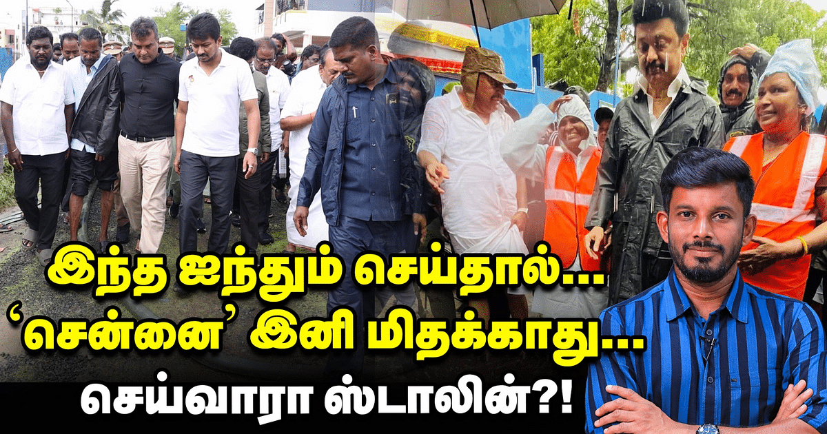 சென்னை பெருமழை ஒரே நாளில் வெளுத்து வாங்கிவிட்டது. அரசு,உடனடியாக களத்தில் இறங்கி செயல்பட்டது. ஸ்டாலினும், உதயநிதியும் சென்னையை சுற்றி சுற்றி வலம் வந்தார்கள். ஆனாலும் இந்த வேகம் ரொம்ப தாமதம். இன்னொரு பக்கம், ஆண்டுதோறும் வடகிழக்கு பருவமழை சென்னையை மிரட்டி வருகிறது. சென்னை மிதக்காமல் இருக்க 5 முக்கியமான திட்டங்கள் உள்ளன. இதை செய்தாலே சென்னை சொர்க்க நகரமாக மின்னும். செய்வாரா ஸ்டாலின்?!